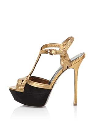 Sergio Rossi Damen Twist T-Strap Sandal (Black / Bronze)