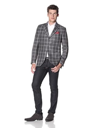 Simon Spurr Herren Plaid 2-Knopf Sakko (Rot / Grau)