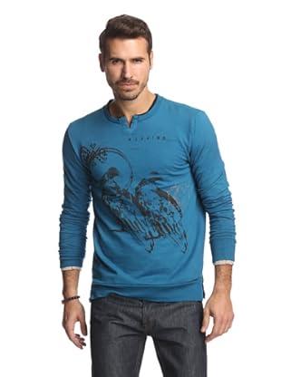 Drifter Herren Aufschlitzen Notch Neck, Grafik-Pullover (Blau)