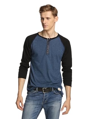 Kinetix Männer Kontrast Raglan Henley (Dilinger Schwarz / Blau)